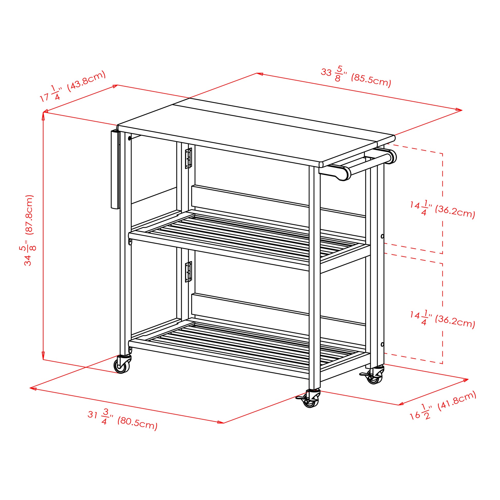 Add a traditional touch to your kitchen, with the simplicity and function of the Winsome Wood Radley Kitchen Cart. This cart is a must have for small spaces that need versatility, providing storage for dishware and knives and also functions as a workable surface. Handsome and durable, the cart is the perfect food prep station featuring a handy knife holder attached on the side, must have for small kitchen. The convenient wooden push handle was design to be used for hanging kitchen towels as well. Two slatted shelves are ideal for kitchen serve-ware, mixing bowls, and more. Keep the cart in one place or roll it out to the dining room and use as a serving cart when guests are over. Four Rolling casters, two of which lock to keep the unit stable while in use, allow for easily mobility when needing to move. Perfect for a studio or college dorm, fold up when not in use and store in the closet. This folding kitchen cart is made with solid wood and is designed for long-lasting use. Finished in a light oak, this kitchen cart offers versatility and convenience. Conveniently packed and shipped in 1 box, that includes the hardware necessary for assembling. Replacement part request can be submitted directly to the manufacturer within 60 days from date of purchase.Dimensions : 37.87 in. Wide 17.24 in. Deep 34.57 in. High