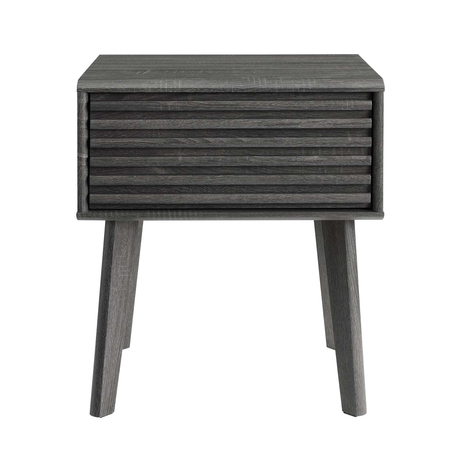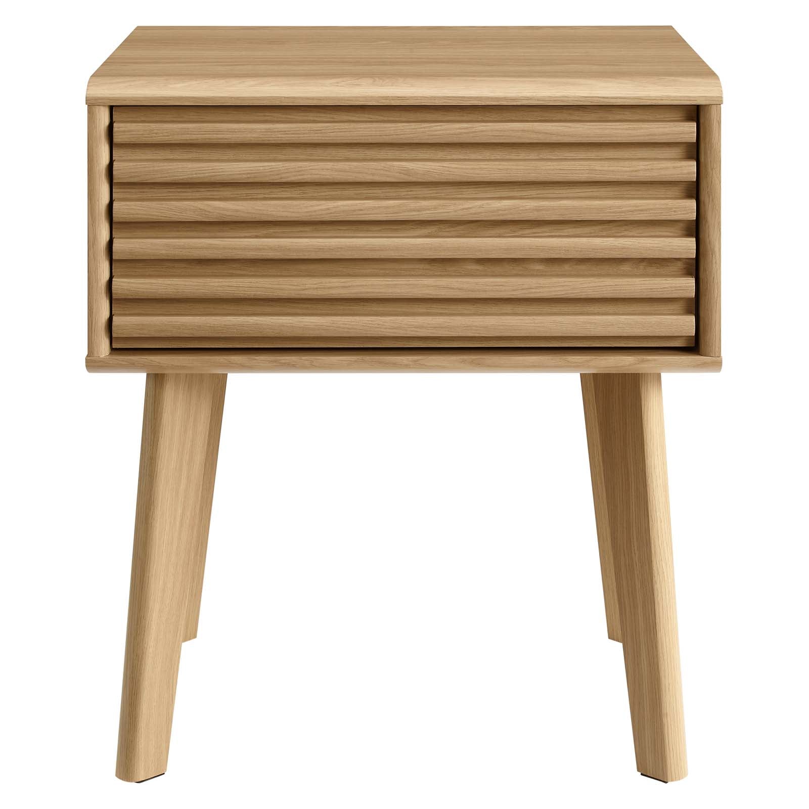 Embrace mid-century aesthetics with this stylish end table, perfect for enhancing your living room or bedside decor. Crafted from a durable particleboard frame, it features a smooth laminate finish that mimics the beauty of walnut grain, ensuring both elegance and longevity. This accent table is supported by four tapered wood legs that not only provide stability but also add a touch of retro charm to your space.