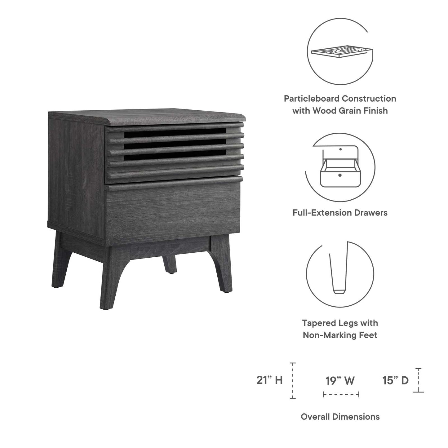 Render Nightstand - MOD-7071 in Walnut, Oak, and Charcoal Finishes