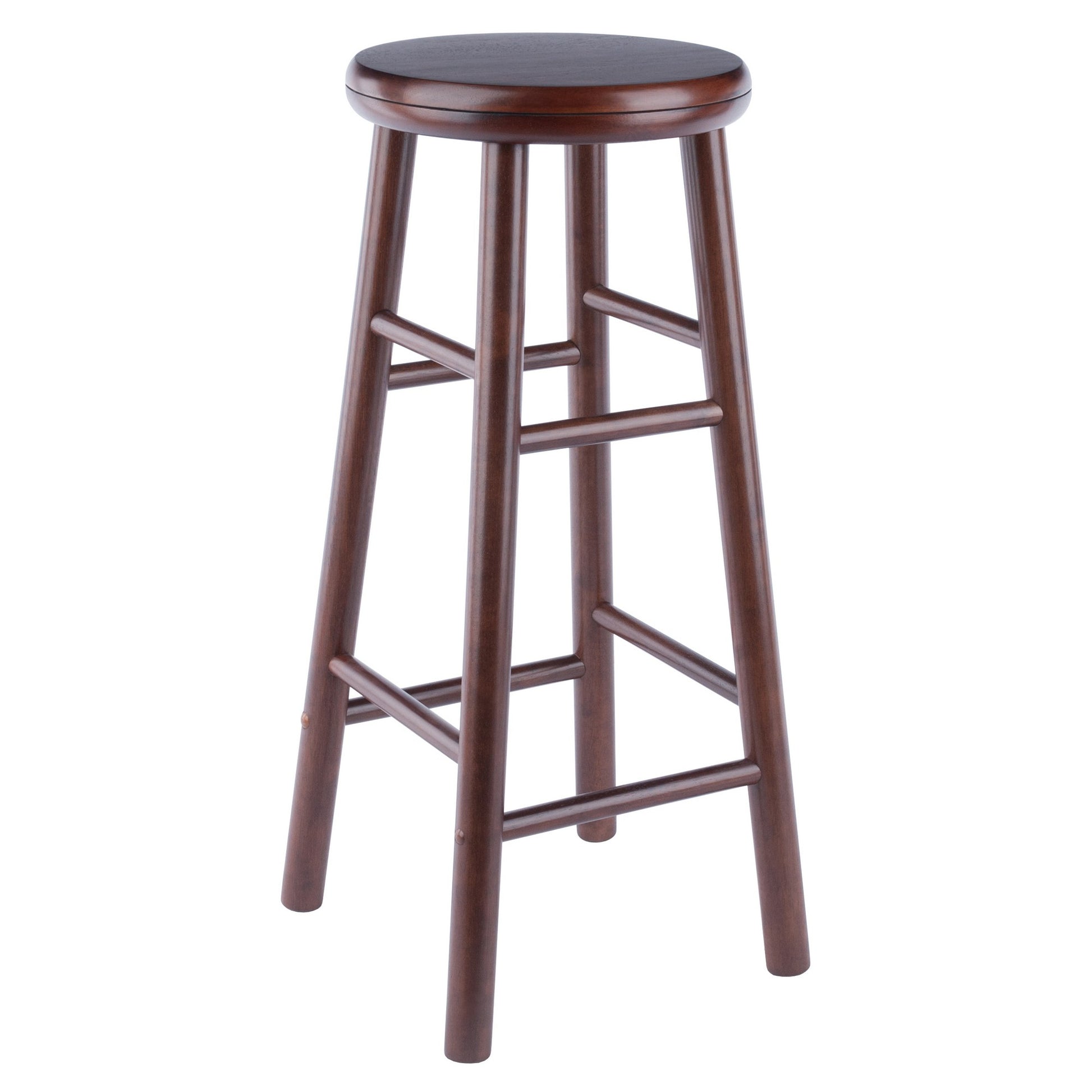Beautifully simple and designed to harmonize with any décor, from modern to rustic, these Winsome Wood 2-Pc Shelby Swivel Seat Bar Stools are a perfect fit for your home. Their conservative leg footprint makes them ideal for smaller dining areas or apartment living. Constructed of all solid wood, each stool features a smooth, circular 360° swivel seat and static weight capacity of 220lbs. Draw them up to a home bar or high table for a relaxing get-together with friends, or use them for extra seating when needed. The 30.2" high stools are finished in a rich walnut and swivel neatly over round, slightly tapered legs. Double sets of crossbars ensure stability while also serving as convenient footrests. Conveniently packed and shipped in 1 box, that includes the hardware needed for assembly.