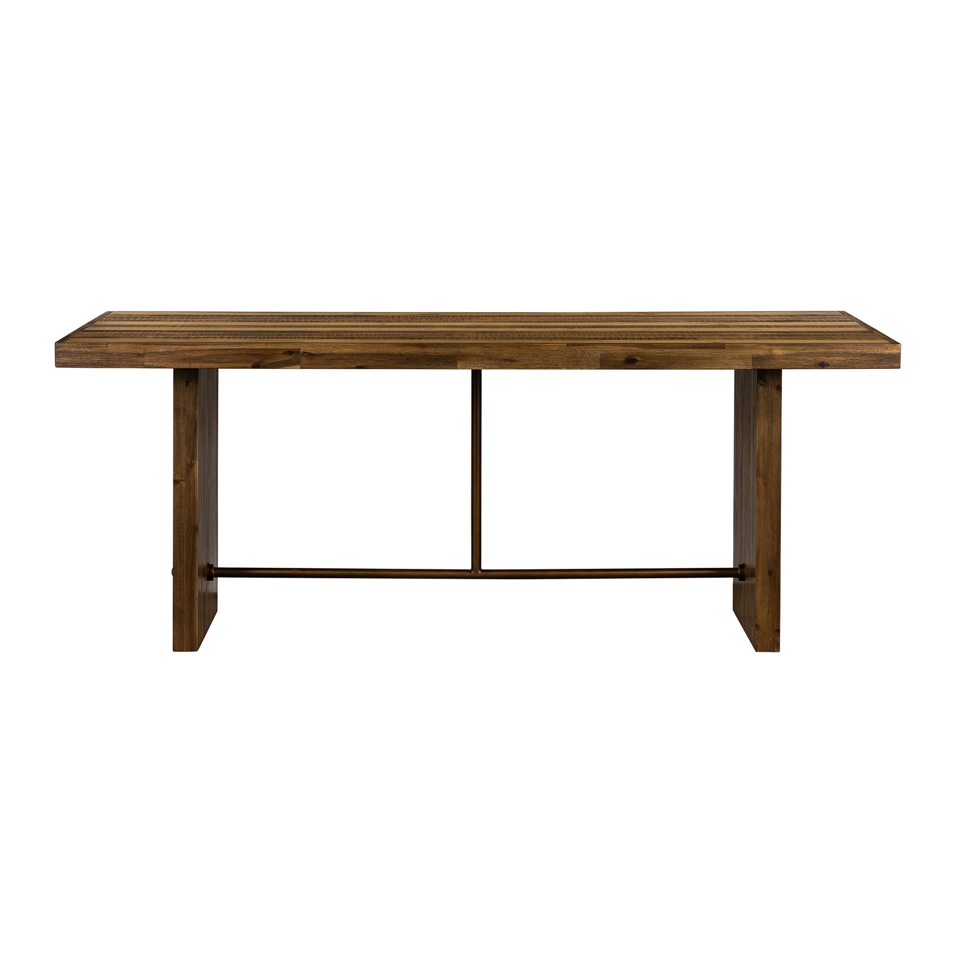 The Armen Living Superb Rustic Oak Trestle Dining Table comfortably seats up to 8 people. The beautiful metal trestle base gives this table a contemporary feel, but the warm mix of oak, acacia and pine wood allow this to cross over into modern farmhouse design themes. This table is ideal for large dinners and parties. The Superb collection expands to the living room. Coordinating dining and living room pieces are not included.