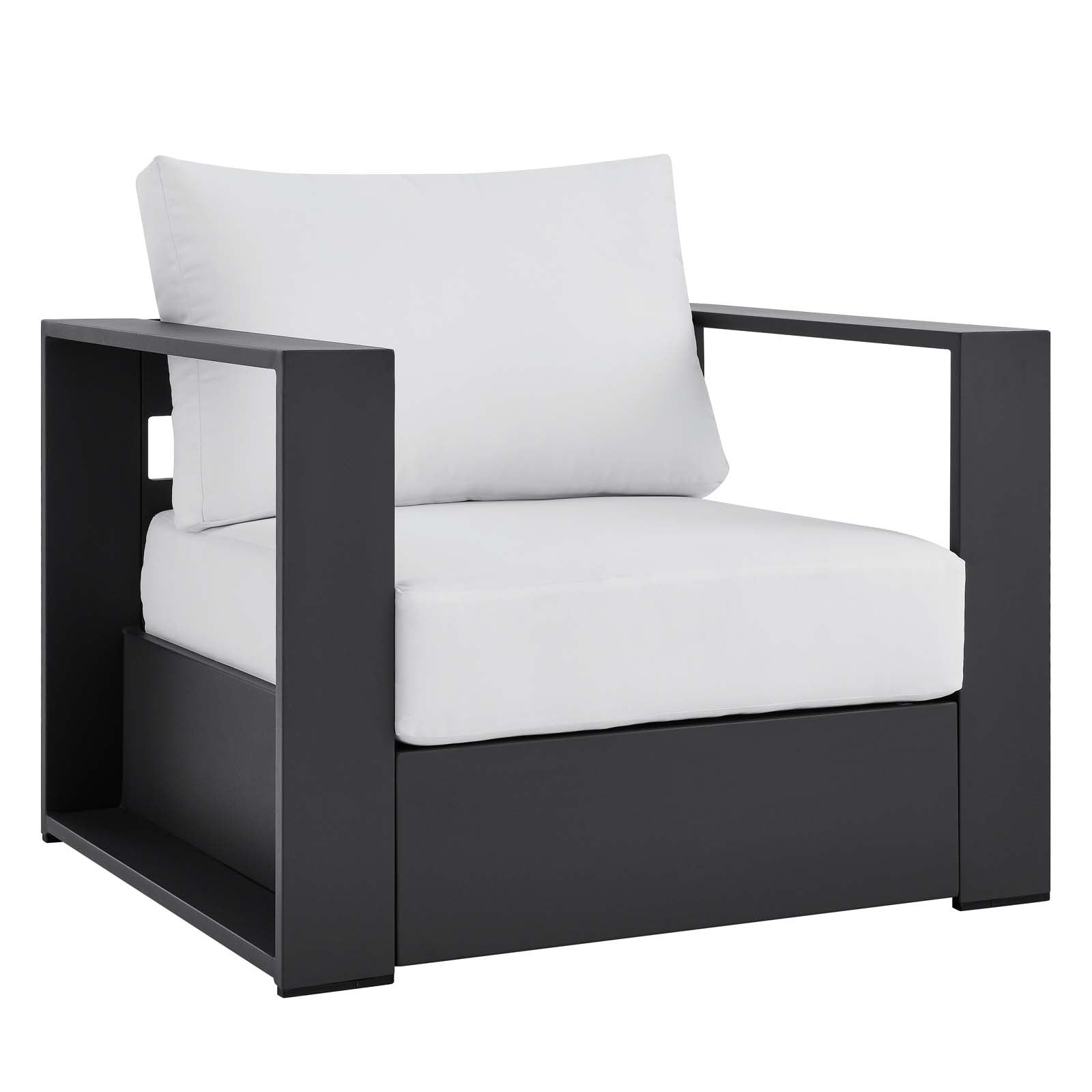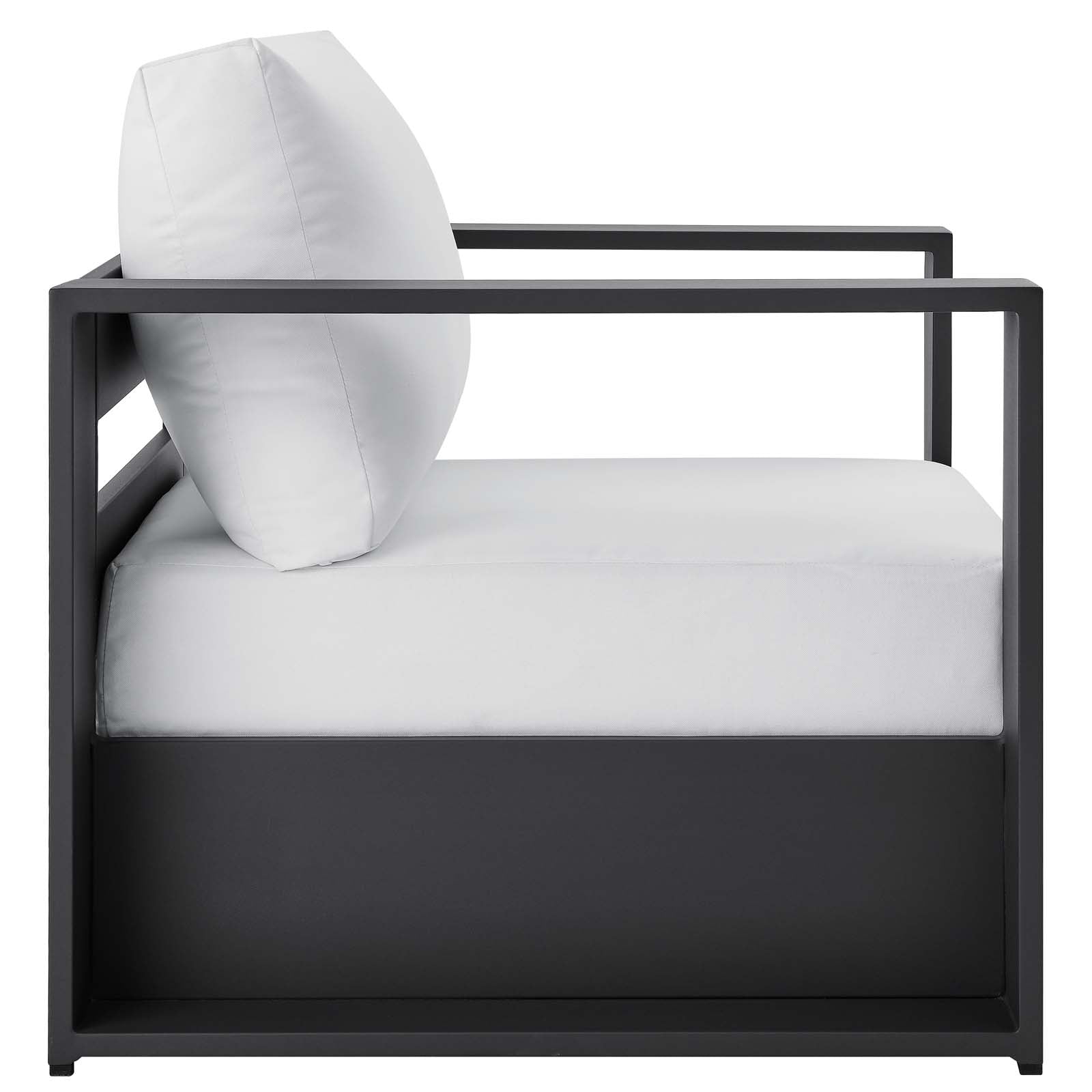 Enliven your alfresco spaces with the Tahoe Aluminum 4-Piece Outdoor Patio Set. This modern outdoor patio set includes two armchairs, a sofa, and a coffee table, crafted with durable powder-coated aluminum, dispensing contemporary elegance in your outdoor lounge spaces. The Tahoe 4-Piece Patio Set is perfect for poolside lounging with a sunproof, water-resistant fabric-covered seat and backrest. With dense foam padding for sustaining comfort and removable, stain-resistant cushions on the sofa and armchairs, this patio set is low maintenance and high performing. A durable patio set, Tahoe comes with easy-to-follow assembly instructions and features non-marking foot glides to protect your deck or patio floor. Weight Capacity - Chair: 331 lbs. Sofa: 993 lbs.