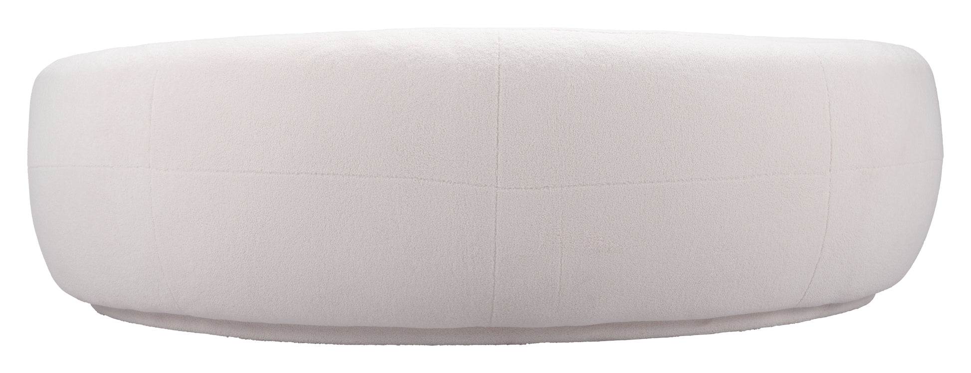 This sofa has a polyester boucle style fabric that works great in any space, hospitality or residential. The shape and design are glam, modern, deco, and boho all at the same time.