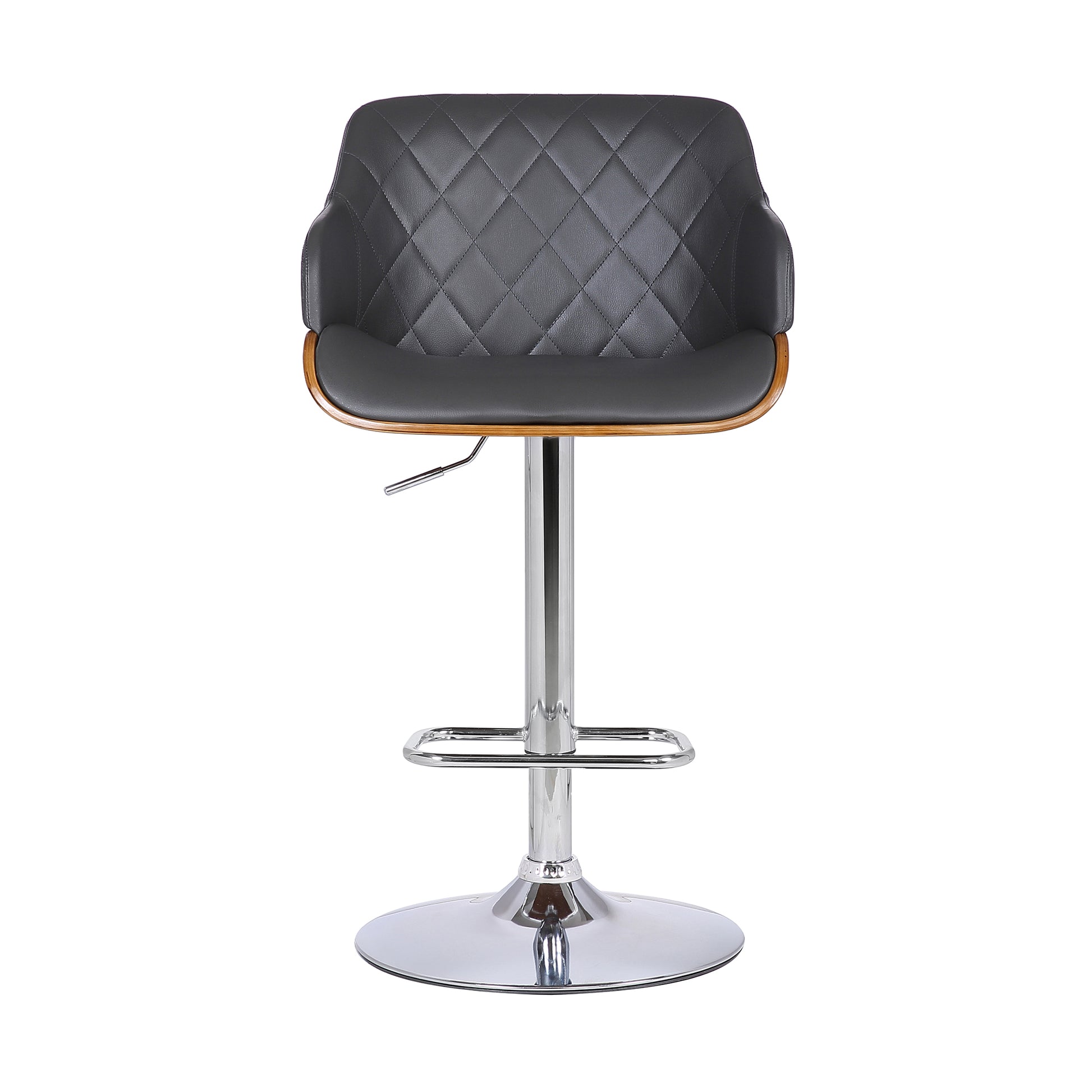 Toby Faux Leather Adjustable Height Swivel Bar Stool with Wood and Chrome