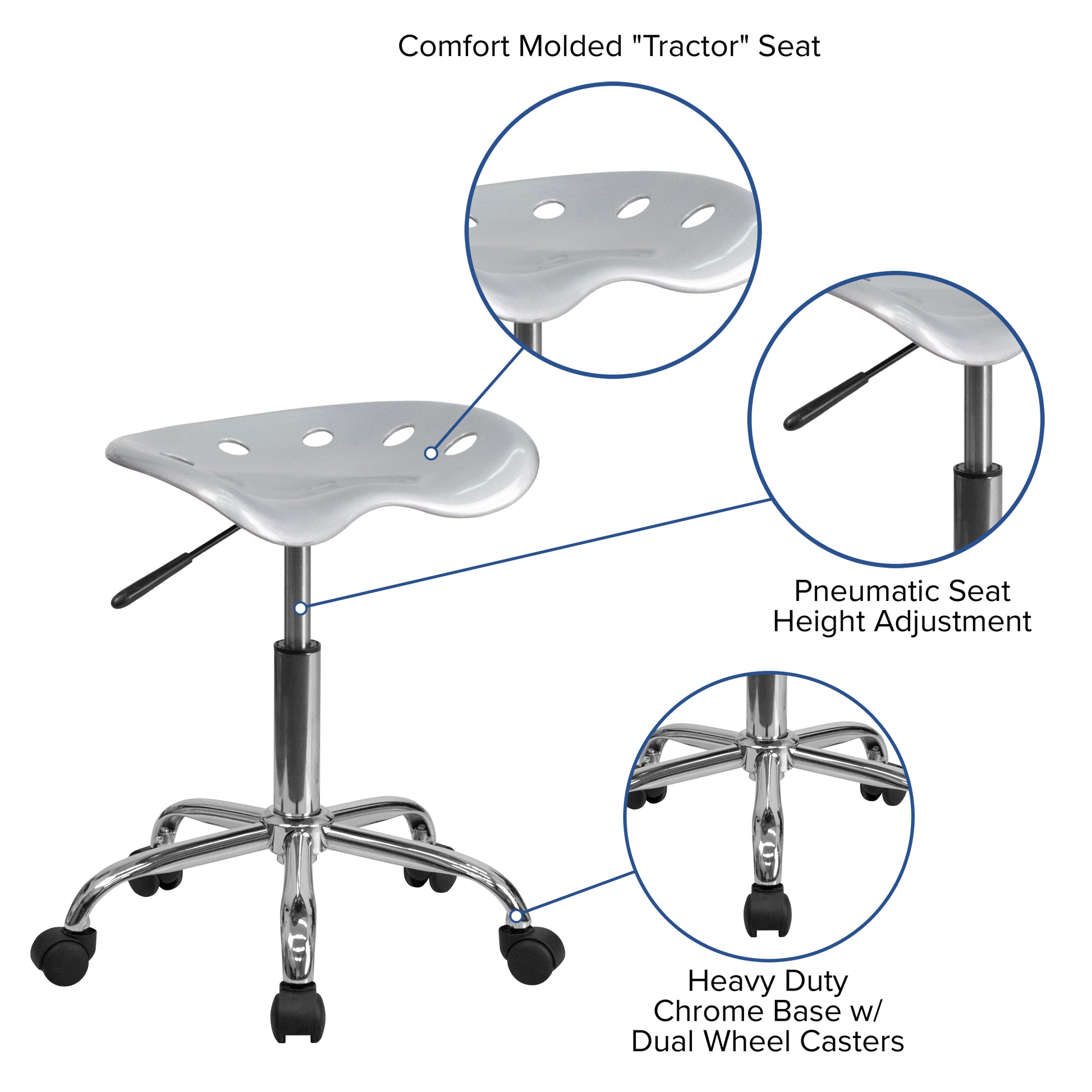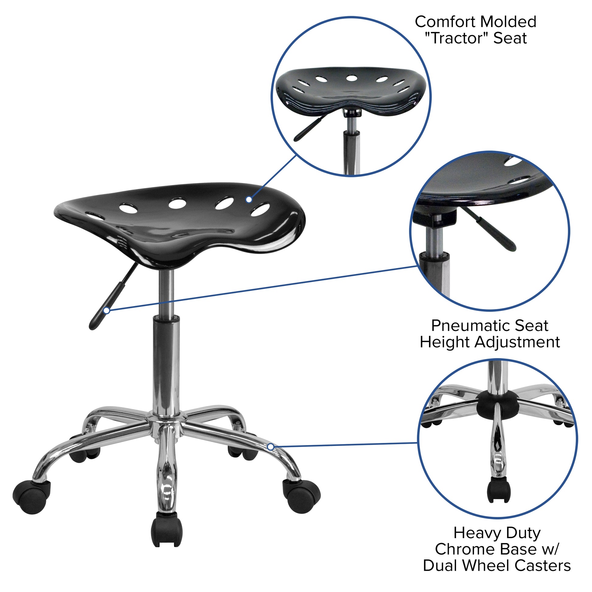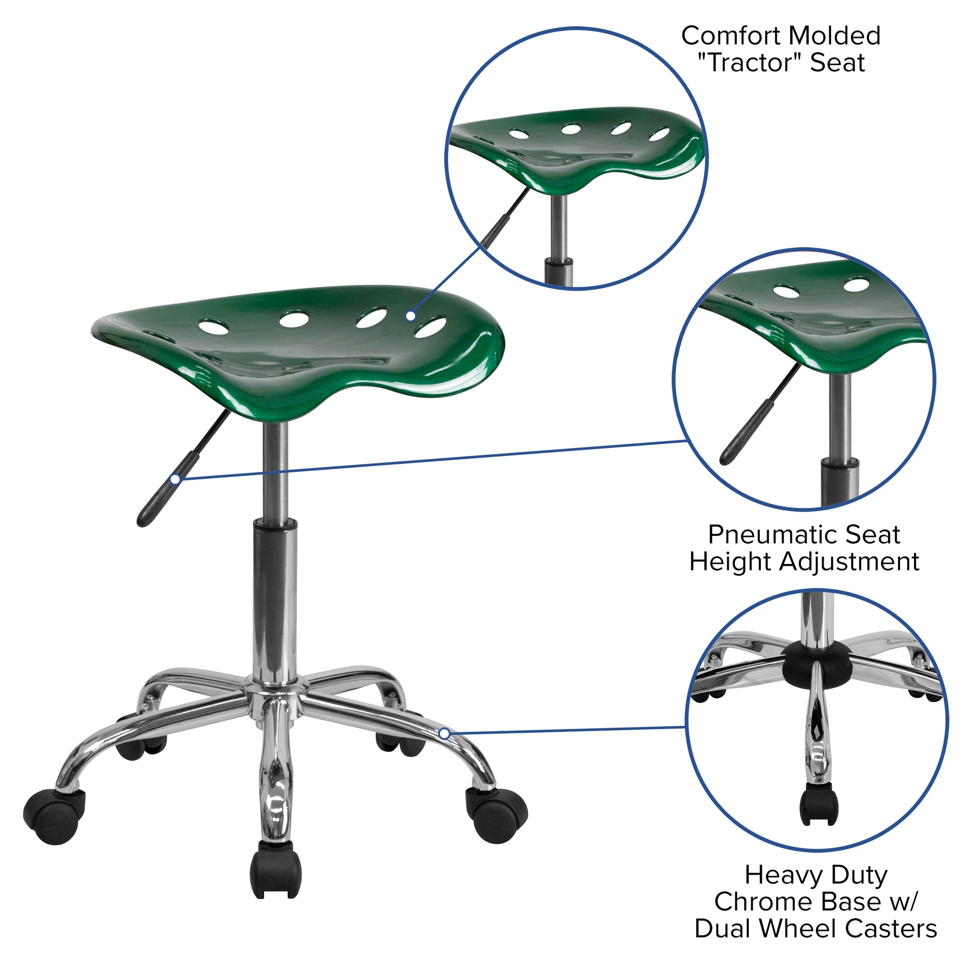 Introducing our vibrant collection of tractor stools, designed to elevate your home office or workspace with a playful yet functional flair. Each stool features a comfortable tractor seat that is perfect for long hours of sitting, whether you're working from home, studying, or enjoying a casual meal. The dimensions of these stools are 17"W x 15"D, with an adjustable height ranging from 20.25" to 25.75", making them suitable for various table heights and user preferences.