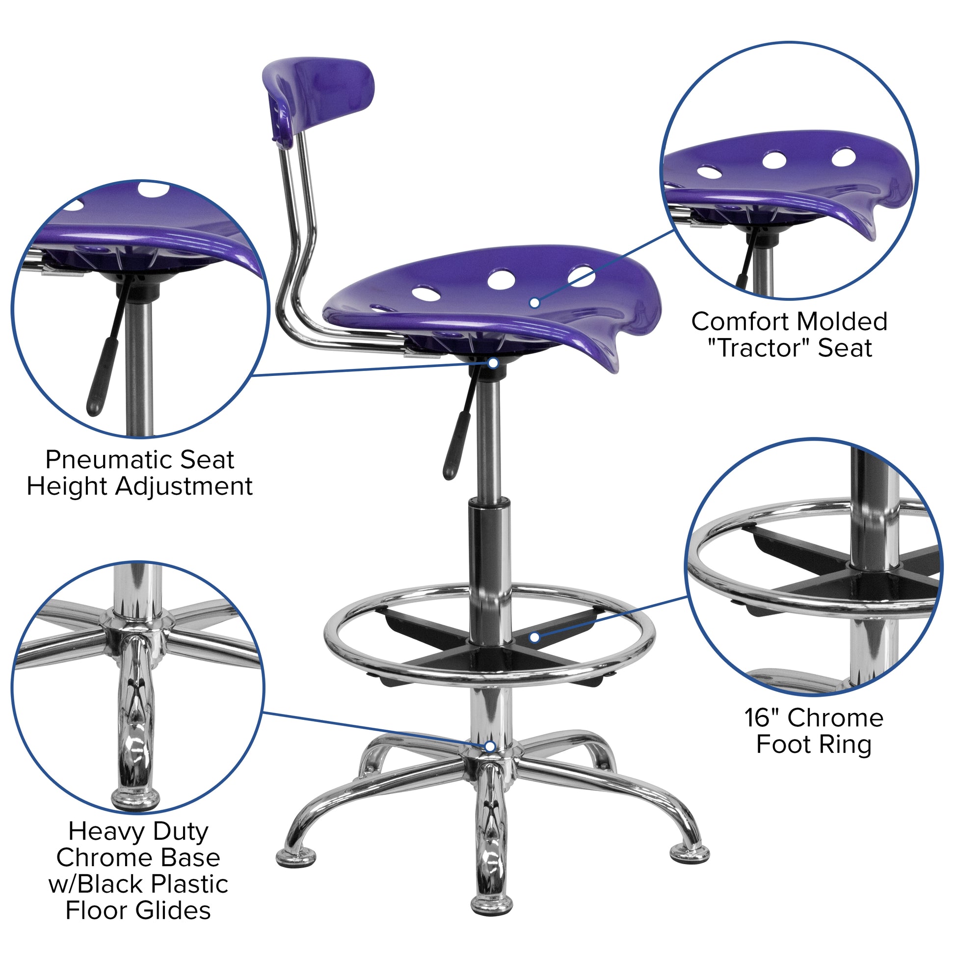 Elevate your workspace with a vibrant and stylish drafting stool designed for both comfort and functionality. This modern stool features a unique tractor seat design, perfect for adding a pop of color to any home office or creative space. With dimensions of 17.25"W x 20"D, and an adjustable height ranging from 32.5" to 41", it accommodates various tasks and preferences, making it an ideal choice for both remote learning and working from home.