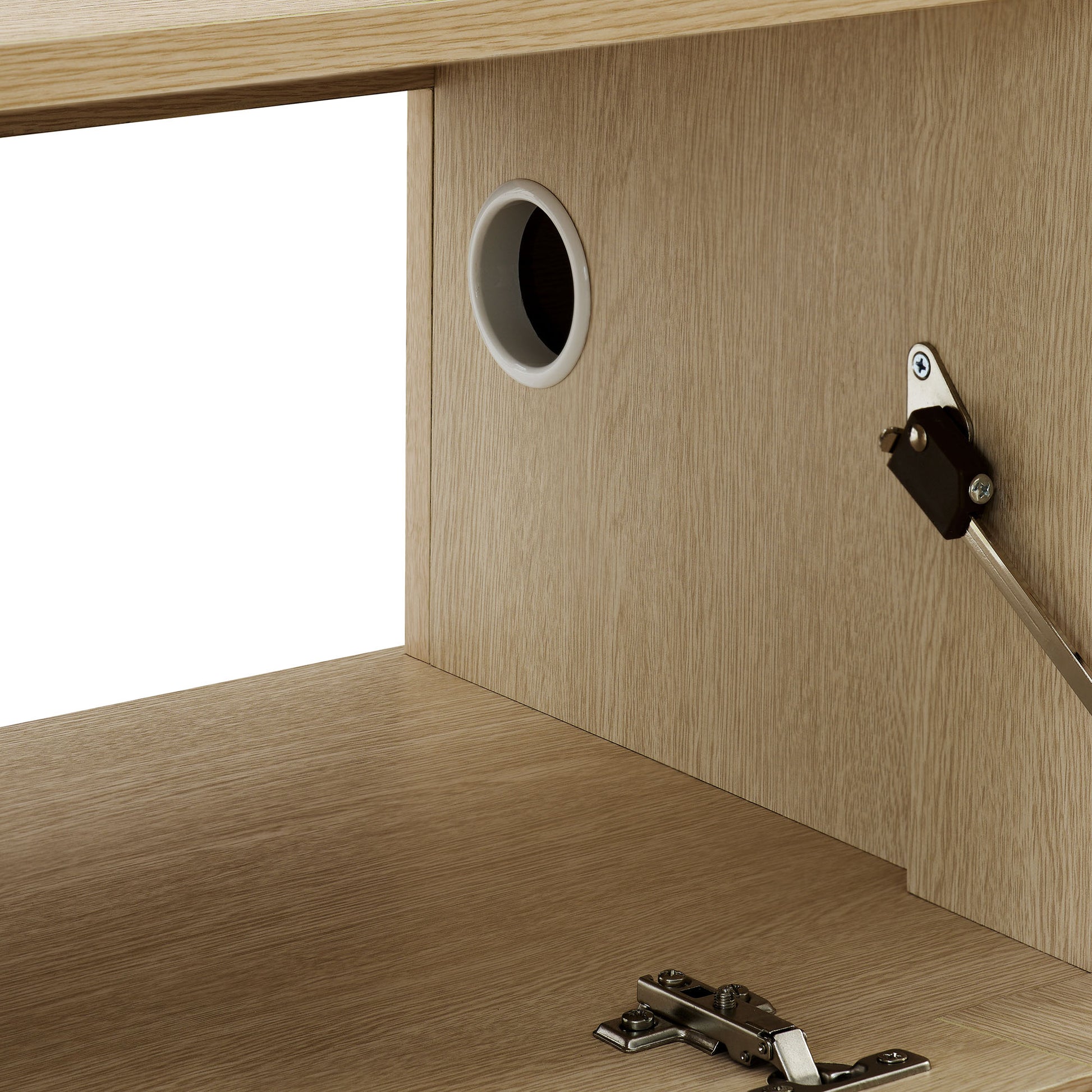 Designed with practicality in mind, this versatile under TV console features a discrete opening in the back and an integrated grommet on top, ensuring efficient cable management. Say goodbye to tangled cords and cluttered spaces, and embrace a clean, streamlined look that impresses guests and elevates your entertainment experience.