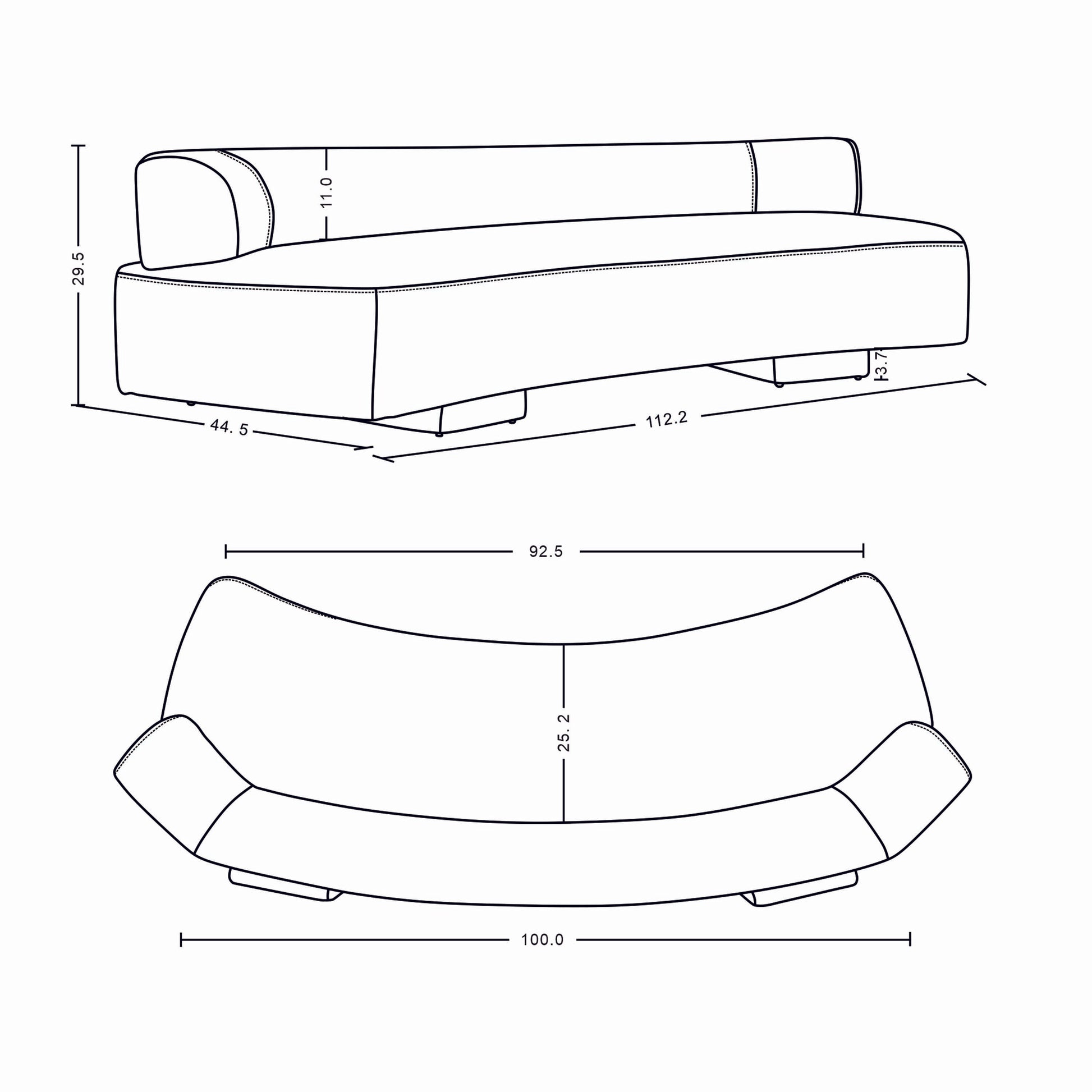 • Elegant curved back design with unique upholstered wrap around legs adds sculptural flair from every angle.