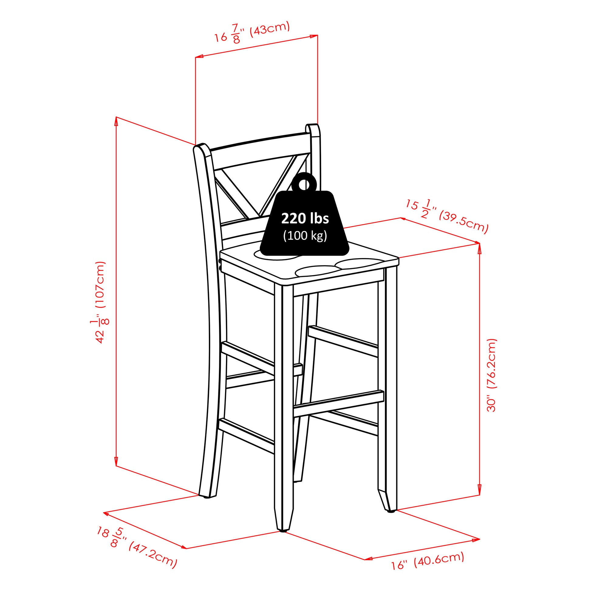 These classic Winsome Wood Victor V-Back bar stools are a versatile piece that allow them to be used with a variety of decors from rustic to contemporary. Constructed of solid beech wood with an antique walnut finish that adds instant warmth to your kitchen nook or wet bar. The seats measure 16.54”W x 15.55”D and offer great contouring for support and comfort for those spending long hours sitting. Functional in any area, you’ll be sitting at 30”H, which make these great for kitchen islands, pub tables or wet bars. With a lower crossbar on all four sides for stability all while providing comfort for resting your feet, making these not only attractive but also very functional. Like many Winsome stools, these V-back stools are also available in counter height for those that need or prefer lower height stools. Conveniently packed and shipped in 1 box, that includes the hardware necessary for assembling. Replacement part request can be submitted directly to the manufacturer within 60 days from date of purchase.Dimensions : 16.93 in. Wide 19.21 in. Deep 42.17 in. High