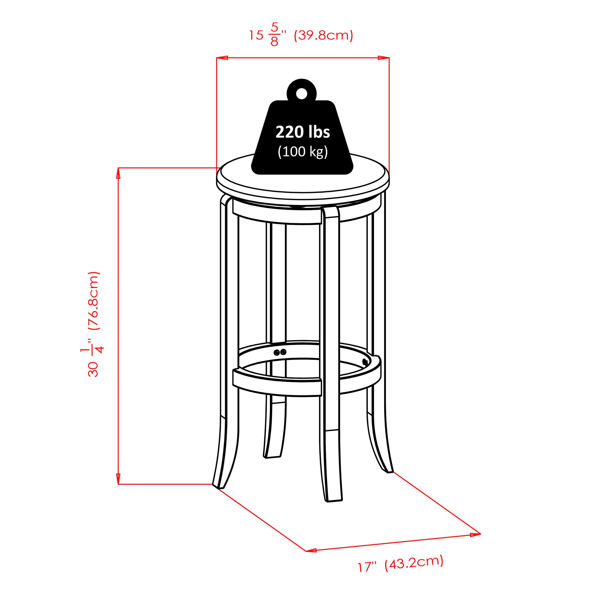 Add a graceful, yet casual look to your dining area, kitchen, or game room with the Winsome Wood Walcott Swivel Seat Bar Stool. Constructed of a solid wood frame in a rich walnut finish and is highlighted by a comfortable black faux PVC seat. Ideal for those needing to sit for long periods of time, the cushioned seat has a diameter of 15.5” and swivel 360 degrees for additional utility. With an all-around ring designed structurally towards the bottom of the legs for stability purposes but that doubles as a footrest to help provided you with hours of extended comfort. The bottom of the legs are slightly turned outwards to provide a sturdy base. An ideal seating for any bar-height pub table, bistro or kitchen counter-top. Like many Winsome Wood stools, the Walcott is also available in counter height for those needing a shorter stool. This item is a single unit that is shipped in 1 box, knocked down ready to be assembled and includes the hardware necessary for assembling. Replacement part request can be submitted directly to the manufacturer within 60 days from date of purchase.Dimensions : 16.97 in. Wide 16.97 in. Deep 30.24 in. High