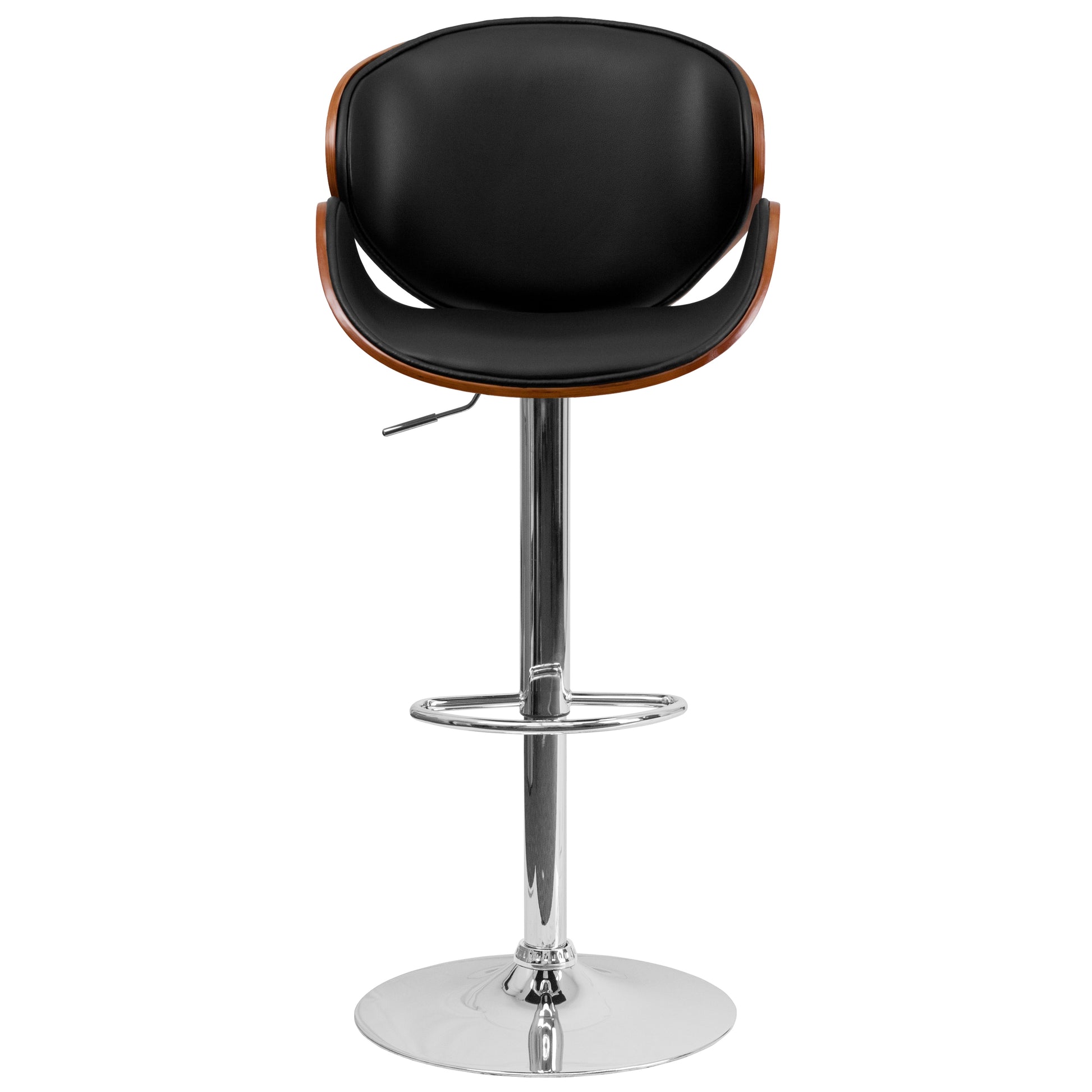 Farley Walnut Bentwood Adjustable Height Barstool with Curved Back and Black Vinyl Seat Dimensions: 21"W x 20"D x 37" - 45.5"H